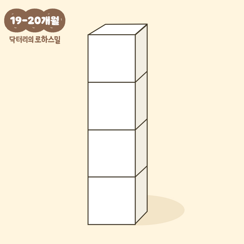 19~20개월의 아기들은 블록을 4단으로 쌓을 수 있습니다. 아이와 블록으로 성을 만드는 놀이를 한번 해보는 것을 어떨까요? 엄마가 만든 블록을 아이가 무너뜨려도 실망하지 마세요~