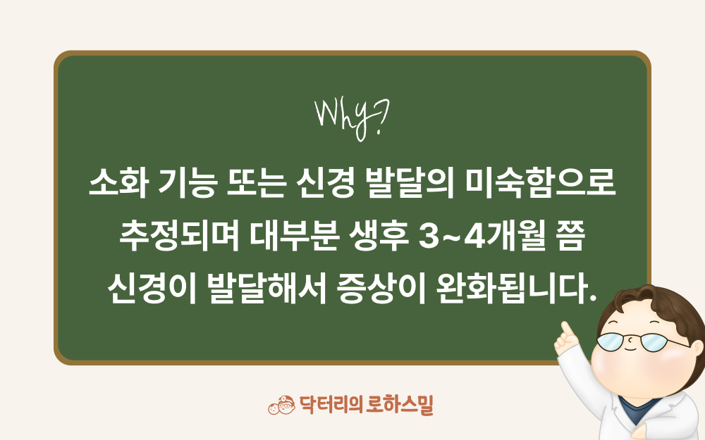소화 기능과 신경이 천천히 발달해서 증상이 좋아집니다. (“100일의 기적”이라고도 하지요.)