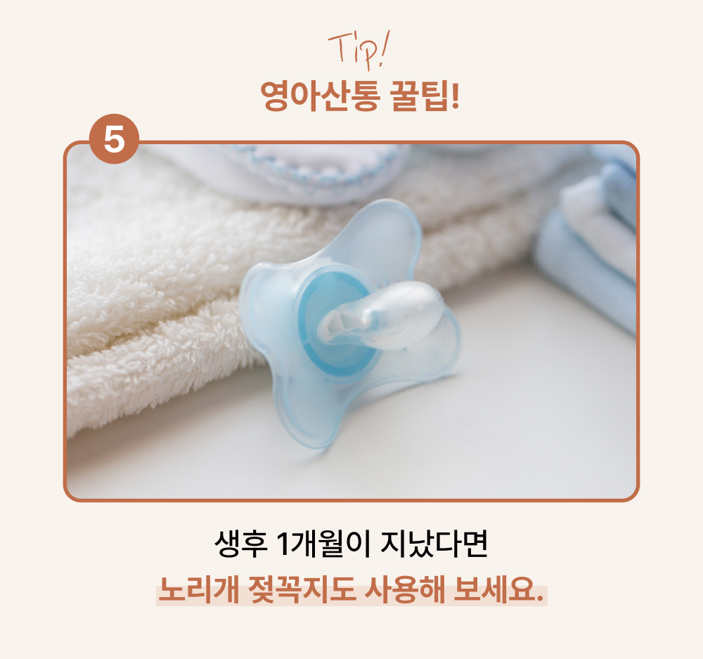 5. 생후 1개월이 지났다면 노리개 젖꼭지도 사용해 보세요.
