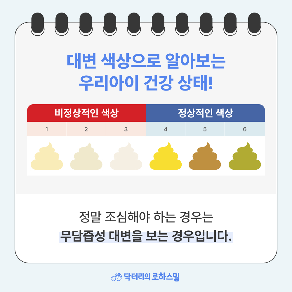 정말 조심해야 하는 경우는 무담즙성(아이보리색, 흰색, 회색, 레몬색, 콩비지색) 대변을 보는 경우입니다.