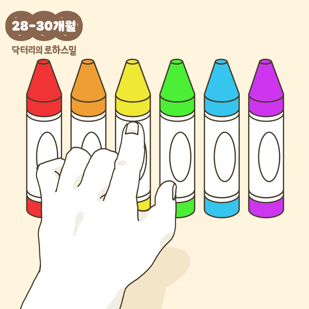 28~30개월의 아기들은 좋아하는 색을 이야기합니다. 많은 남자 아이는 파란색, 여자아이는 분홍색을 좋아하지만 이것이 과연 성별에 의한 차이인지 사회적 교육에 의한 차이인지는 정확히 알 수 없습니다.