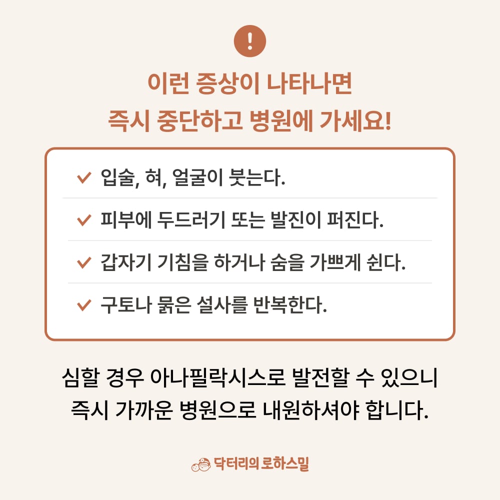⚠️ 이런 증상이 나타나면 즉시 중단하고 병원에 가세요!