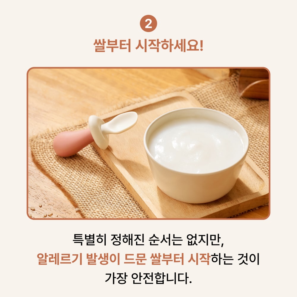 Step 2. 첫 테스트 시작은 알레르기 발생이 드문 쌀부터 시작하는 것이 가장 안전합니다.