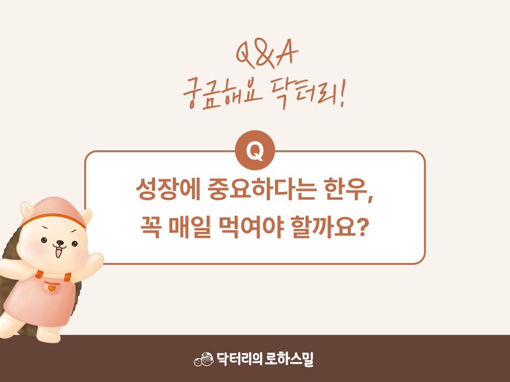 한우는 매일 먹어도 당연히 괜찮고요, 한우를 안 먹은 날이 있으면 그 다음 날 조금 더 먹는 식으로 성장기 동안 적절한 양의 소고기를 꾸준히 먹이면 됩니다.