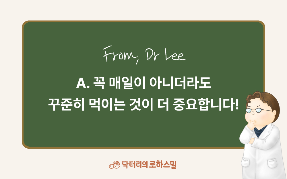 A. 꼭 매일이 아니더라도 꾸준히 먹이는 것이 더 중요합니다!
