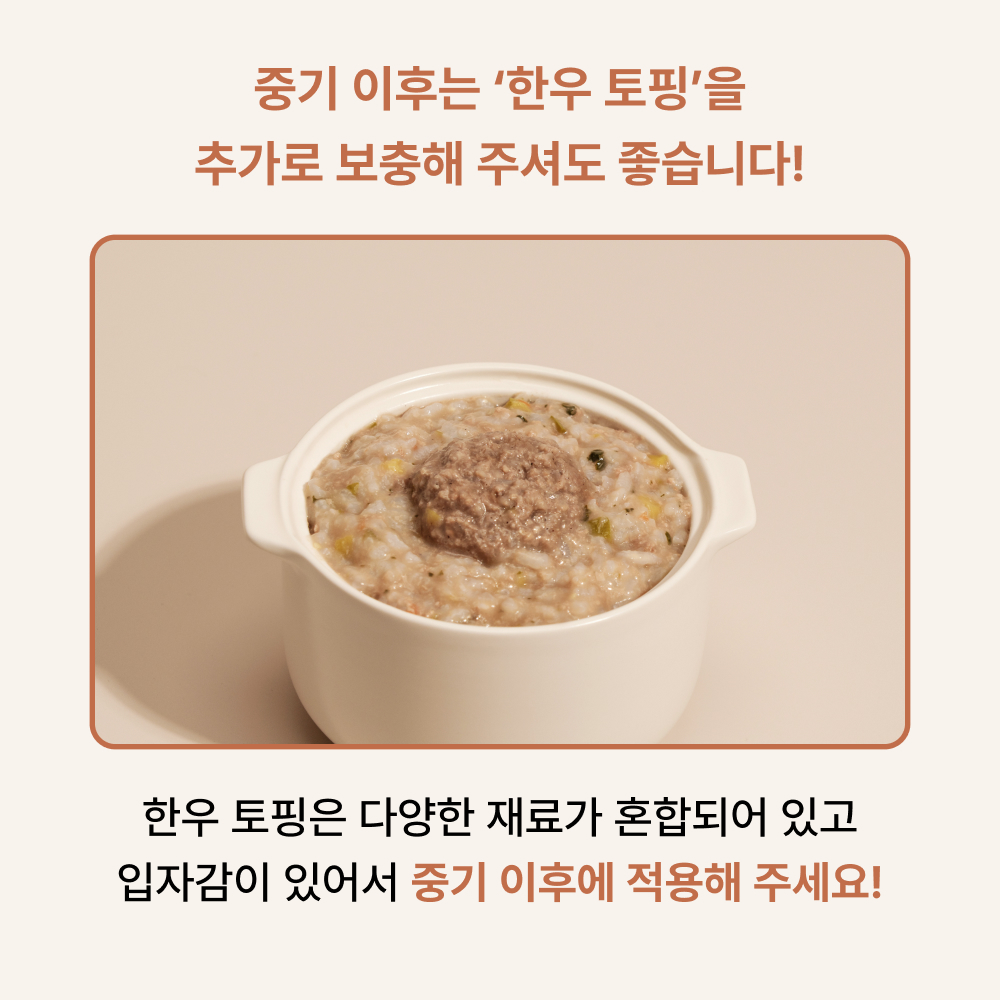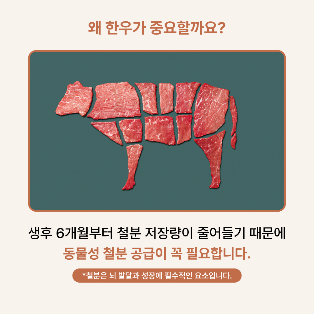 실제로 이유식으로 매일 한우를 먹이기에는 입자감이나 소화, 알레르기 반응 등 고려할 게 있기 때문에, 현실적으로 조절이 필요합니다.