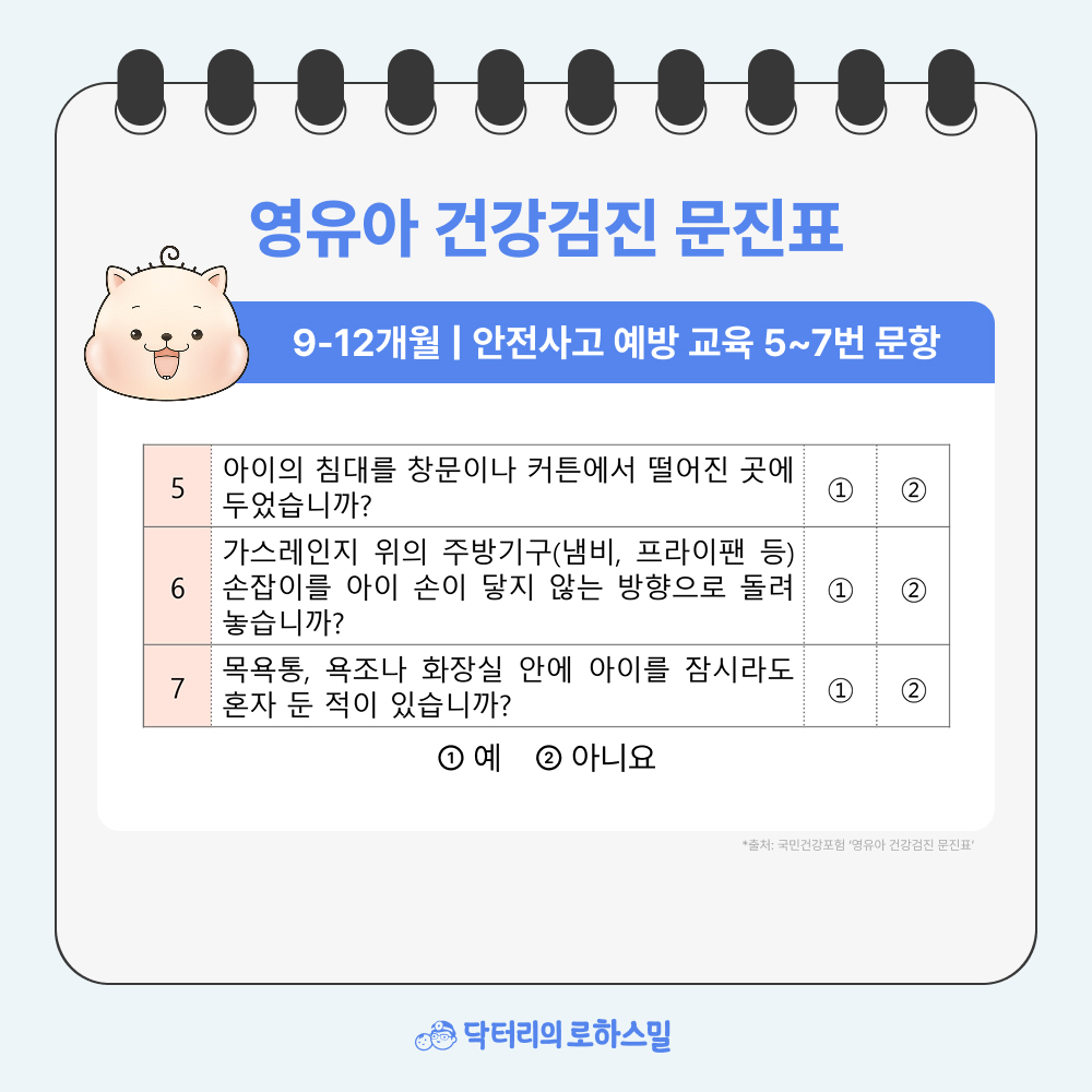[영유아 검진 9-12개월용] 잠깐의 방심이 큰 사고로! 외부 환경에서의 안전사고를 주의하세요!