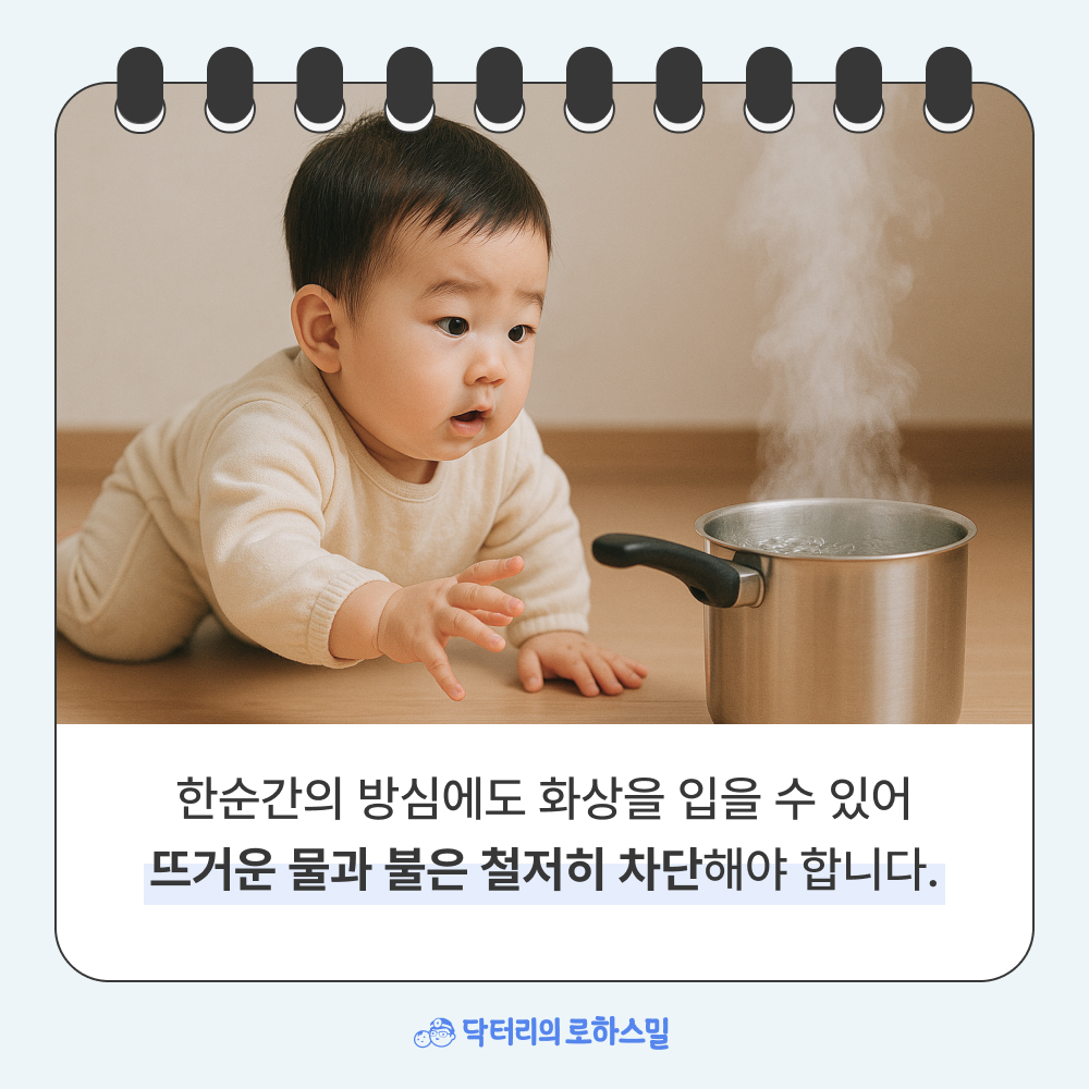 뜨거운 물이나 불이 있는 공간에 아이가 들어오지 않도록 철저히 차단해주세요. 아이 눈높이에서 어떤 게 보이는지, 어떤 것에 손이 닿는지를 한 번 더 살펴보는 습관이 필요합니다.