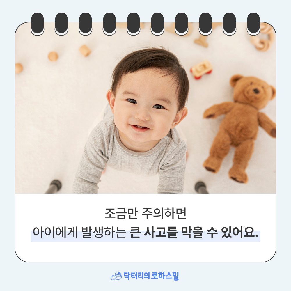 이런 이야기만 들으면 “도대체 아이를 어떻게 키우나…” 싶은 마음이 들 수도 있지만, 사실 대부분의 아이들은 잘 자랍니다. 우리는 단지, 조금만 주의하면 막을 수 있는 사고를 피하고 싶은 것이지요.