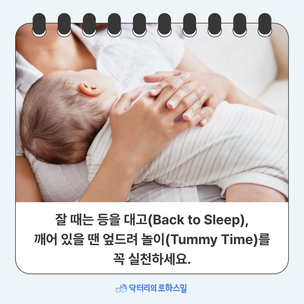 잘 때는 등을 대고(Back to Sleep), 깨어 있을 땐 엎드려 놀기(Tummy Time)!