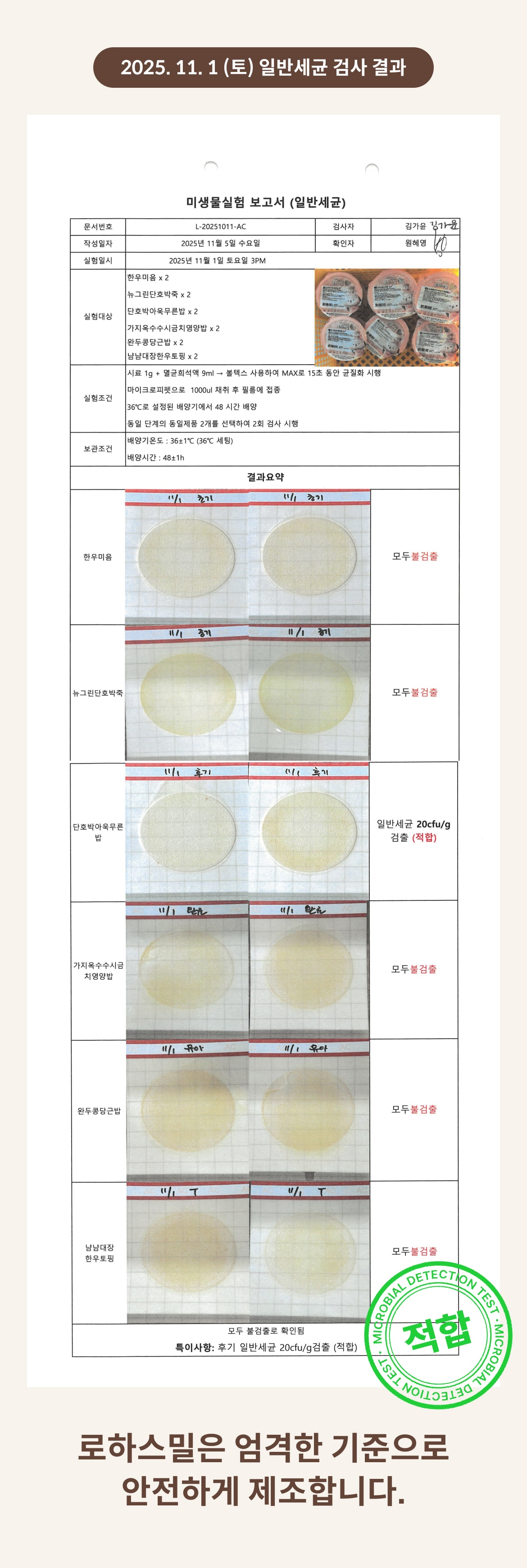 2025. 11. 1 (토) 일반세균 검사 결과