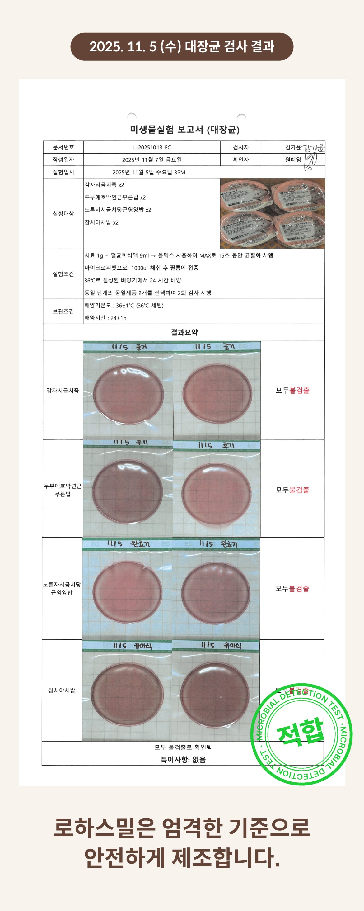 2025. 11. 5 (화) 대장균 검사 결과