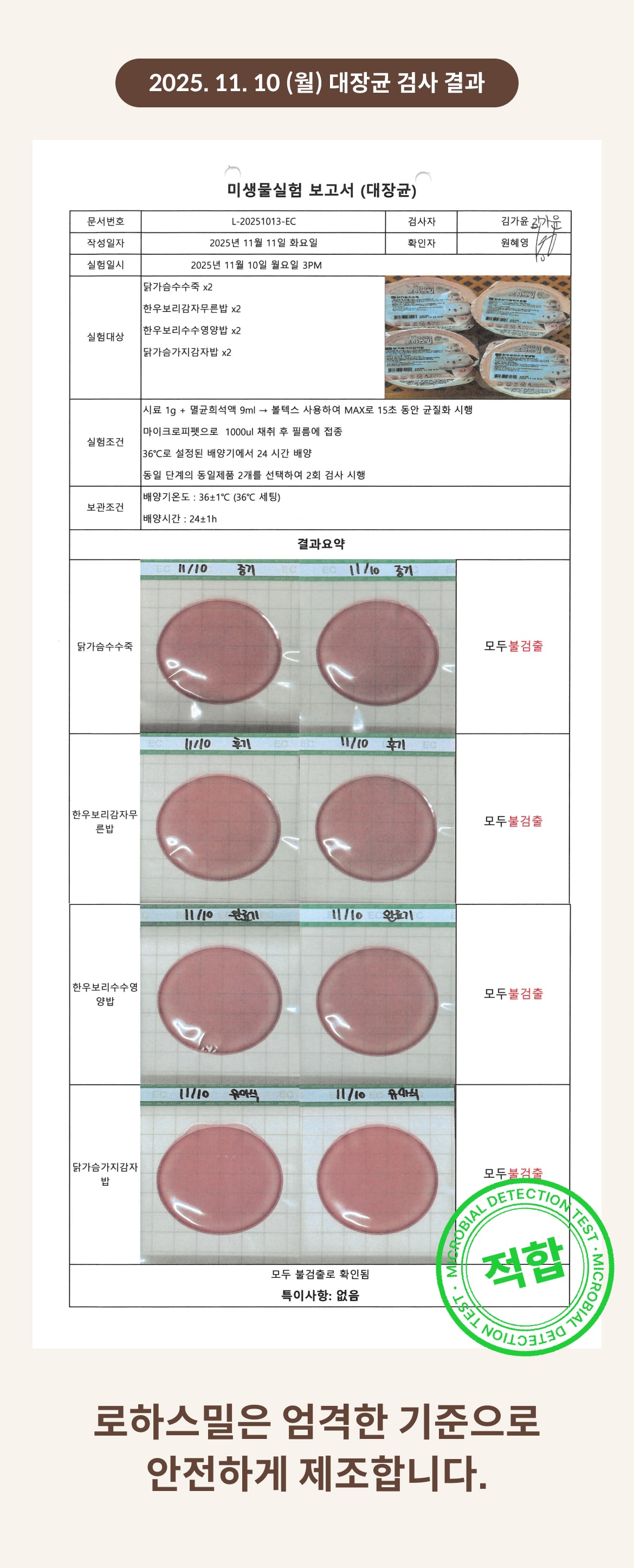 2025. 11. 10 (월) 대장균 검사 결과