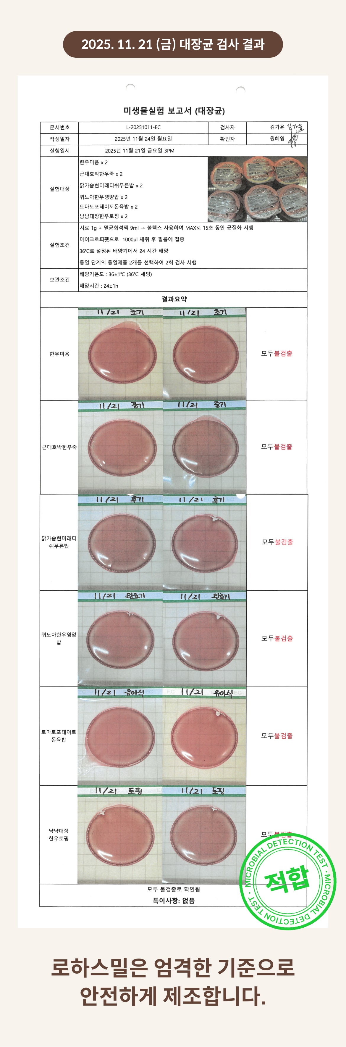 2025. 11. 21 (금) 대장균 검사 결과