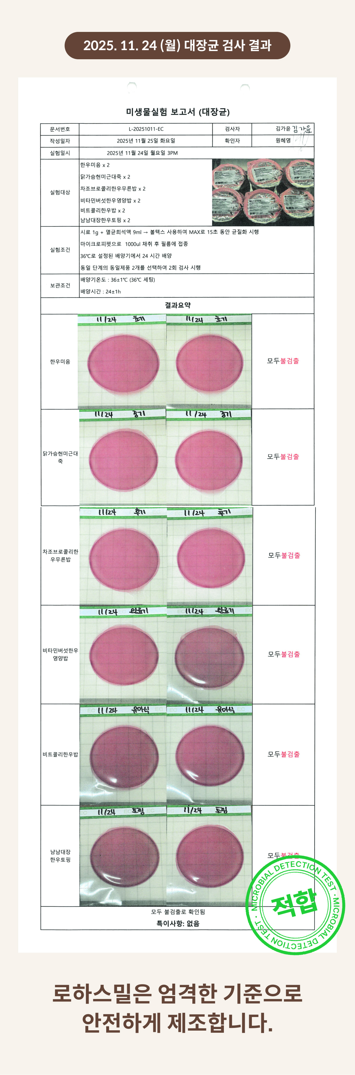 2025. 11. 24 (월) 대장균 검사 결과