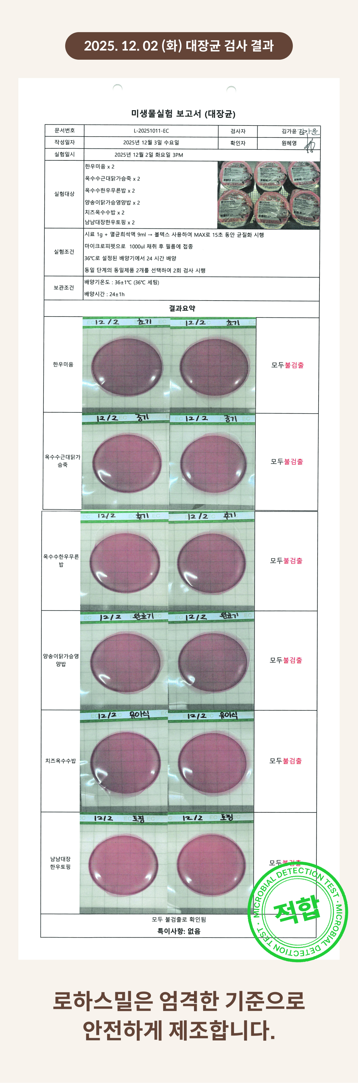 2025. 12. 02 (화) 대장균 검사 결과