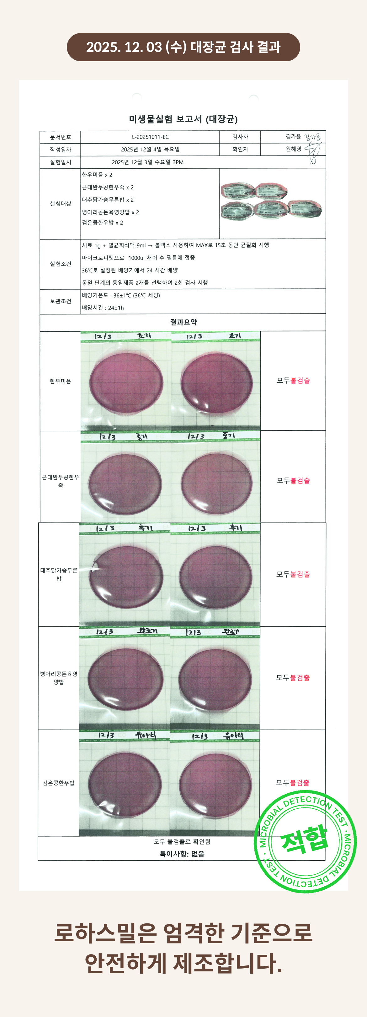 2025. 12. 03 (수) 대장균 검사 결과