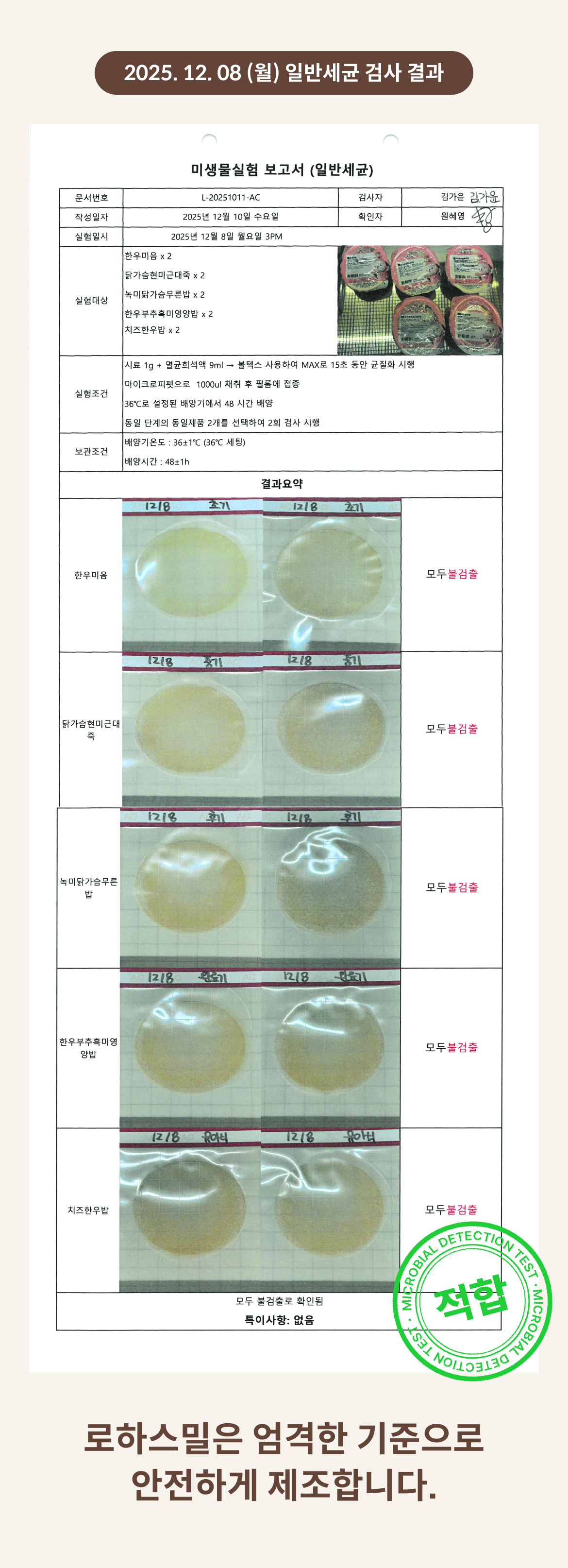 2025. 12. 08 (월) 일반세균 검사 결과