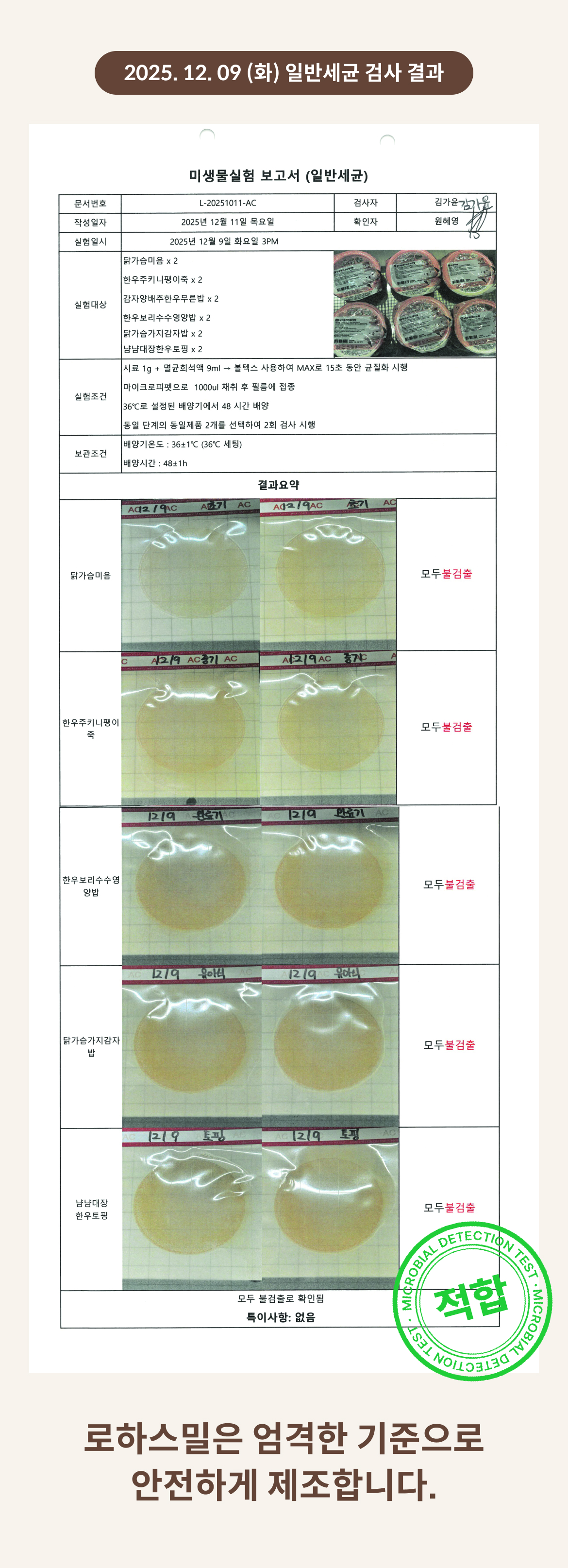 2025. 12. 09 (화) 일반세균 검사 결과