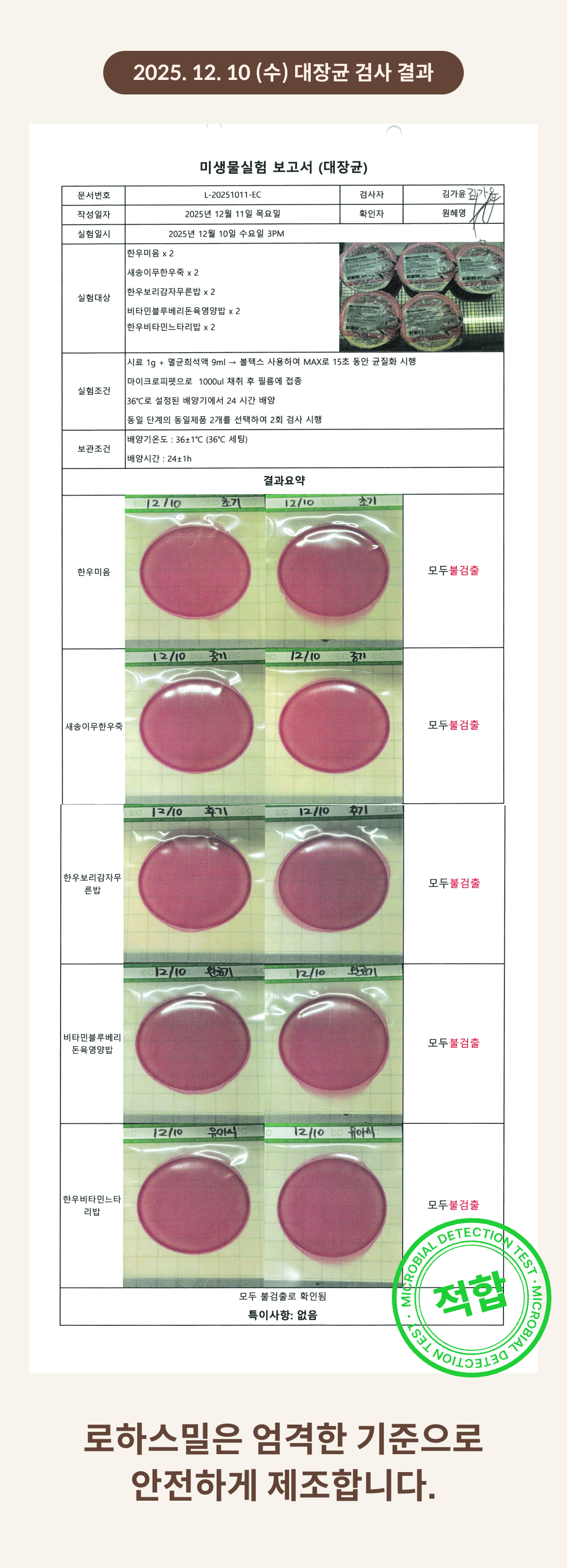 2025. 12. 10 (수) 대장균 검사 결과