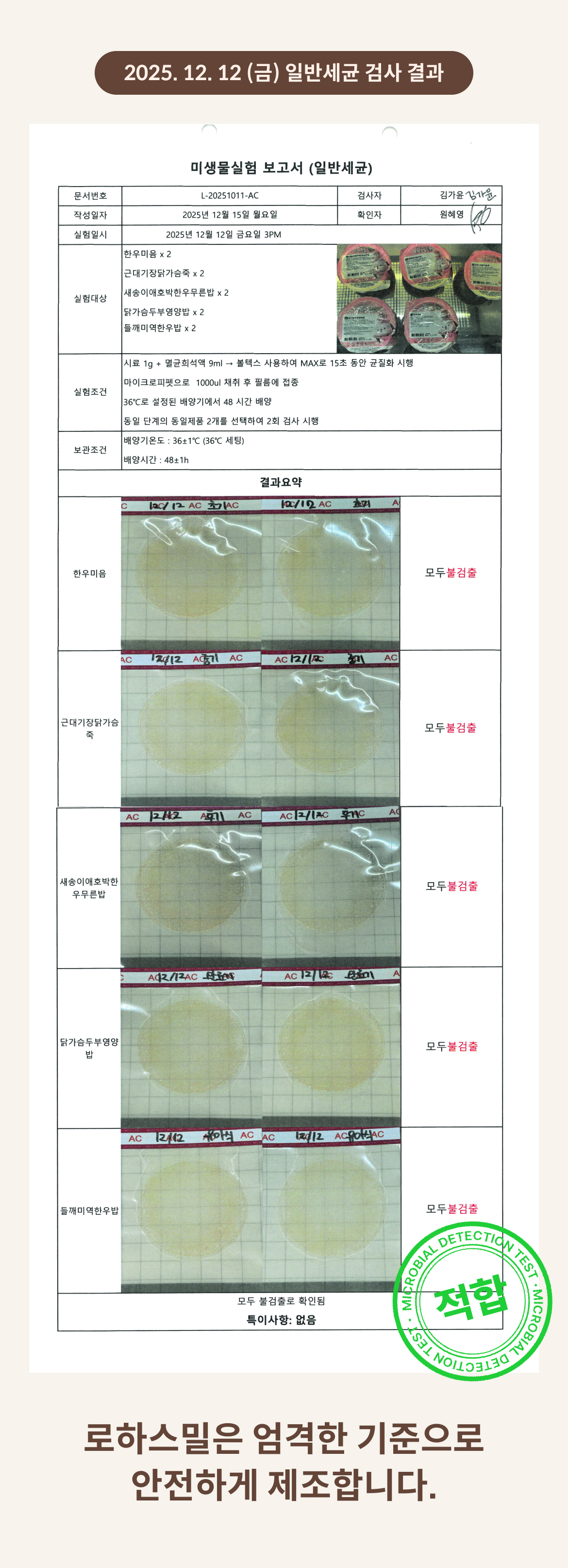 2025. 12. 12 (금) 일반세균 검사 결과