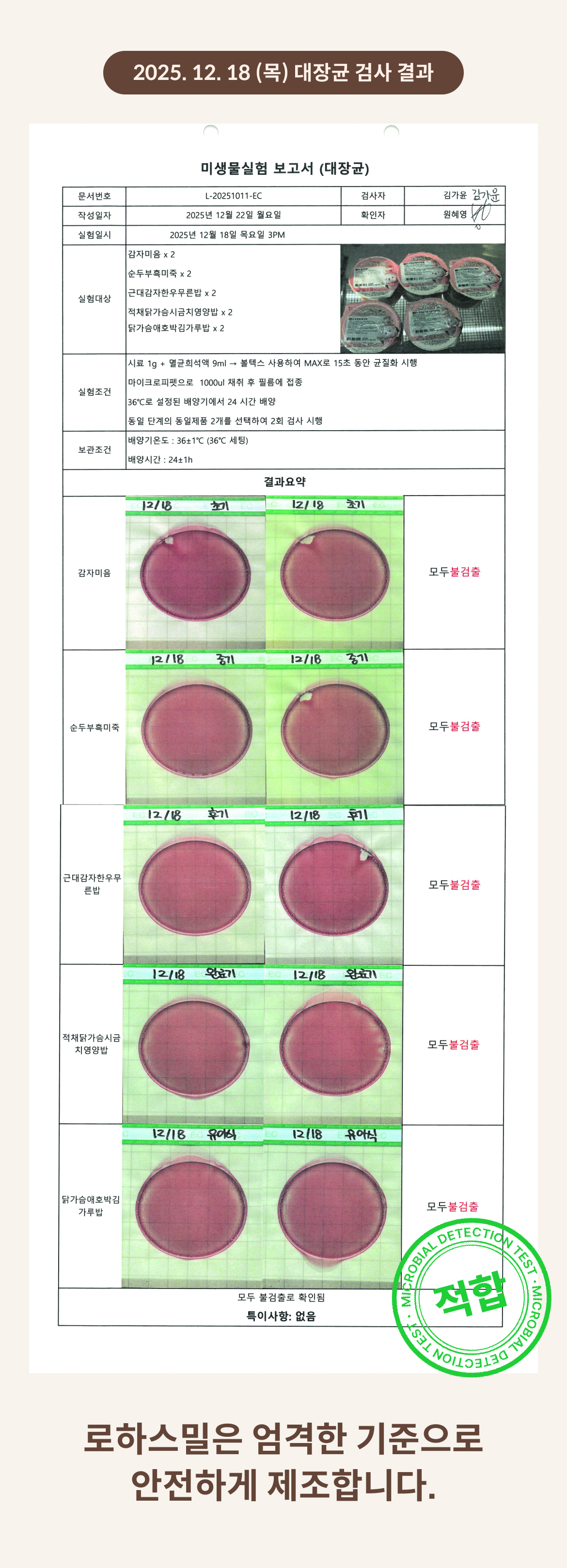 2025. 12. 18 (목) 대장균 검사 결과