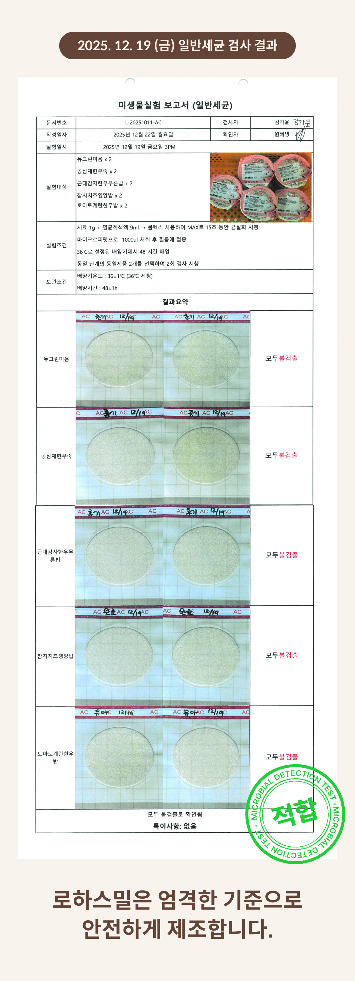 2025. 12. 19 (금) 일반세균 검사 결과