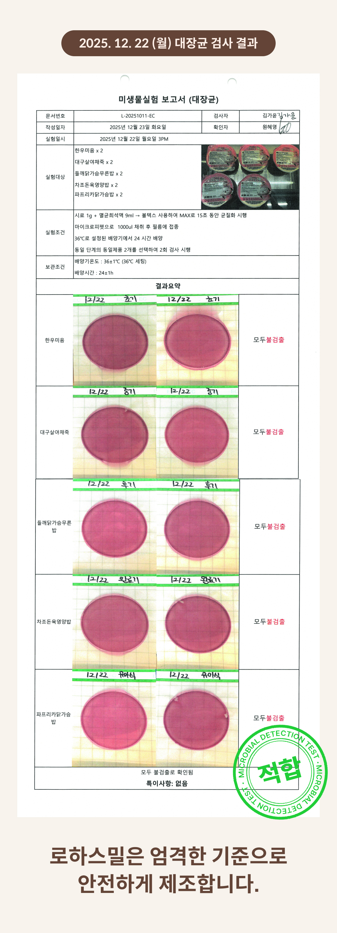 2025. 12. 22 (월) 대장균 검사 결과