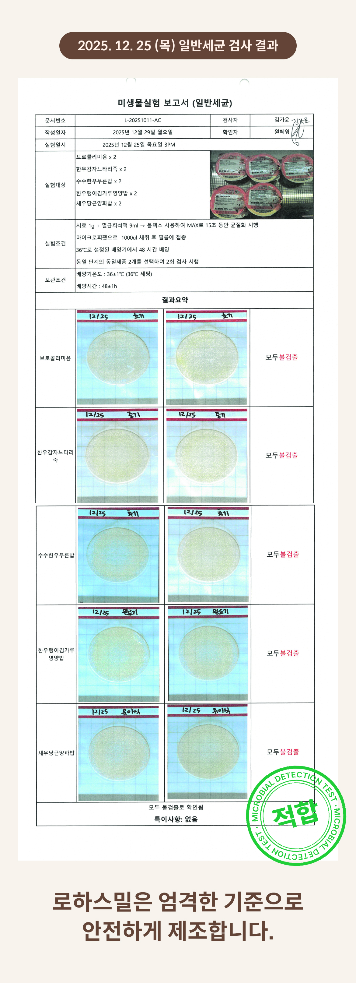 2025. 12. 25 (목) 일반세균 검사 결과