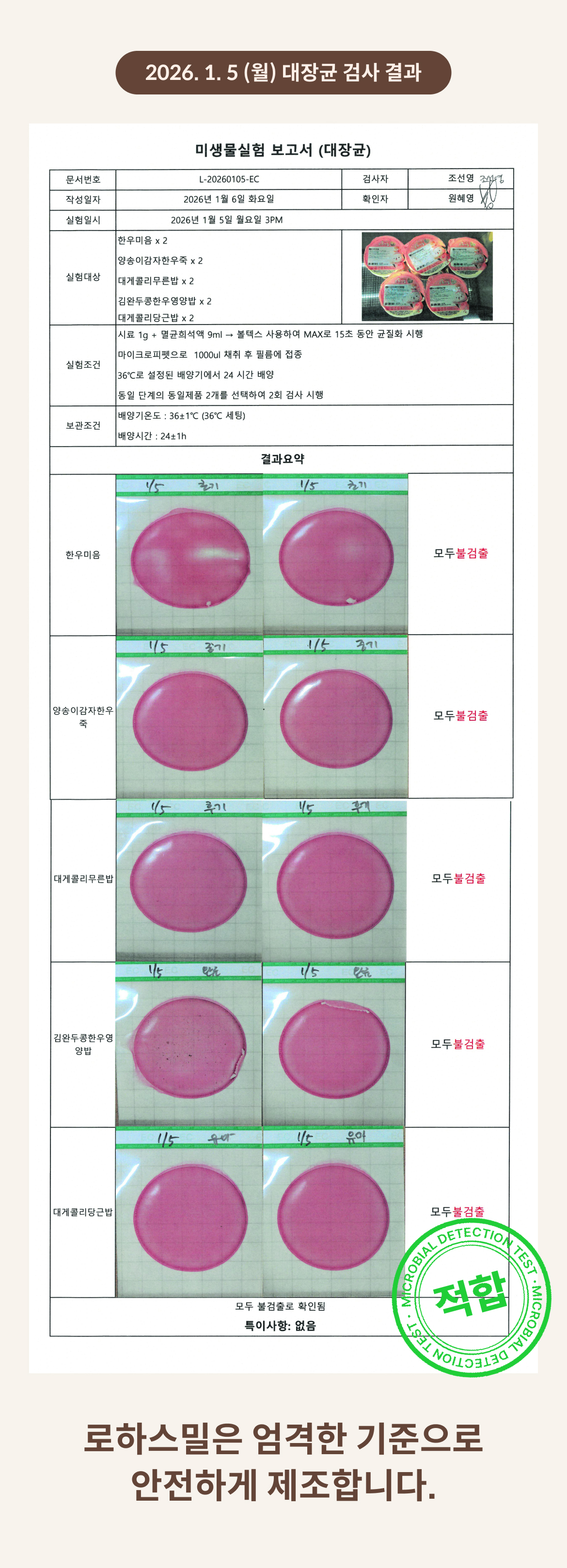 2026. 1. 5 (월) 대장균 검사 결과