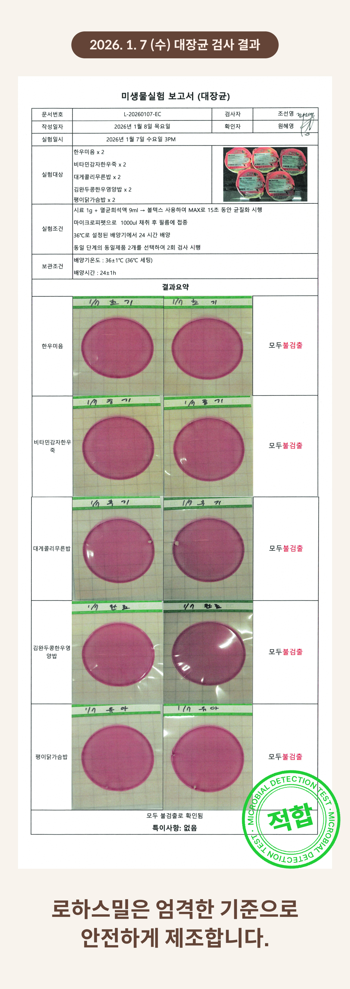 2026. 1. 7 (수) 대장균 검사 결과