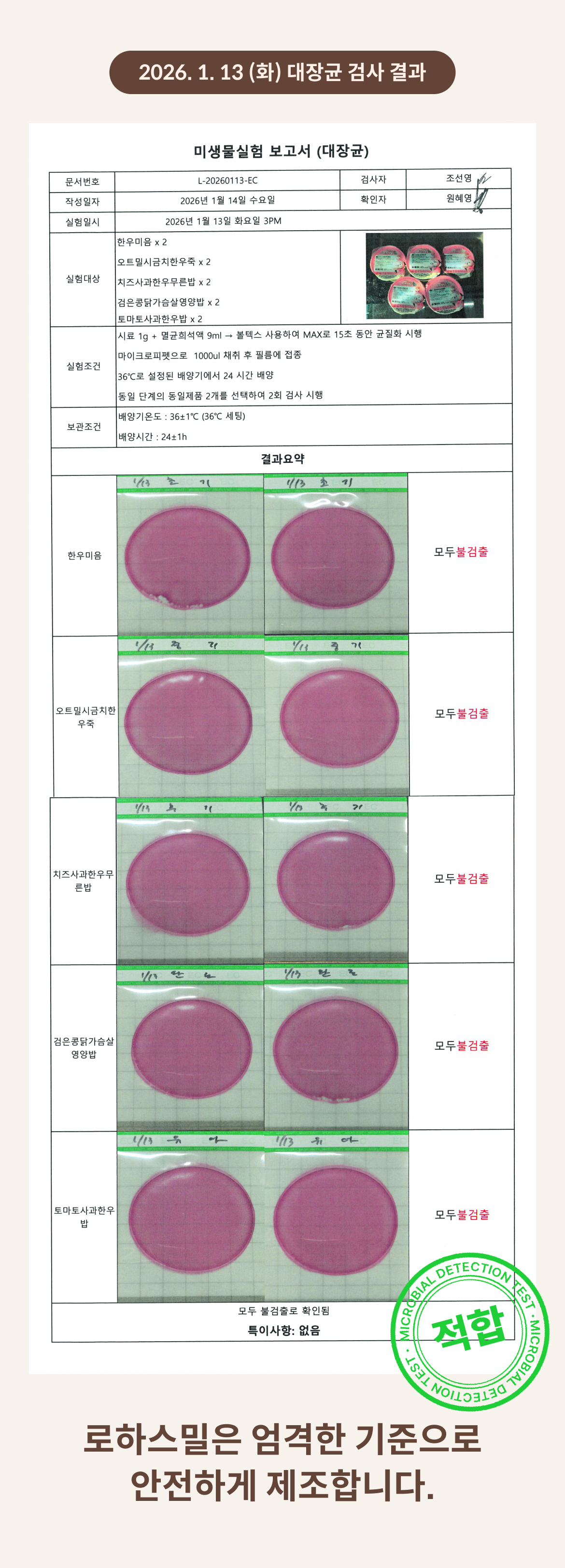 2026. 1. 13 (화) 대장균 검사 결과