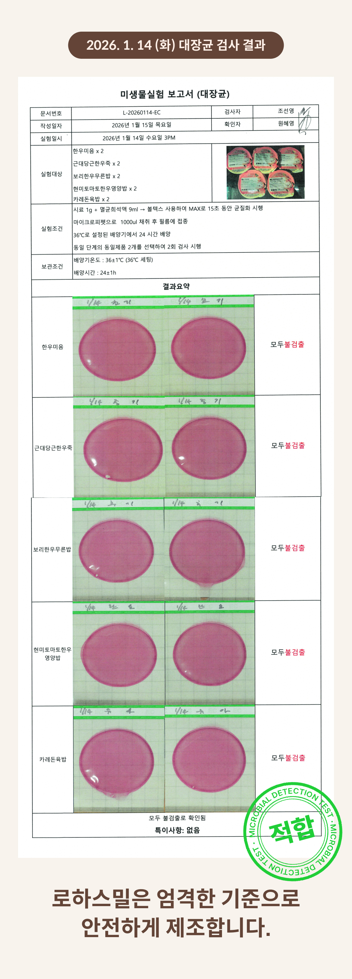 2026. 1. 14 (수) 대장균 검사 결과