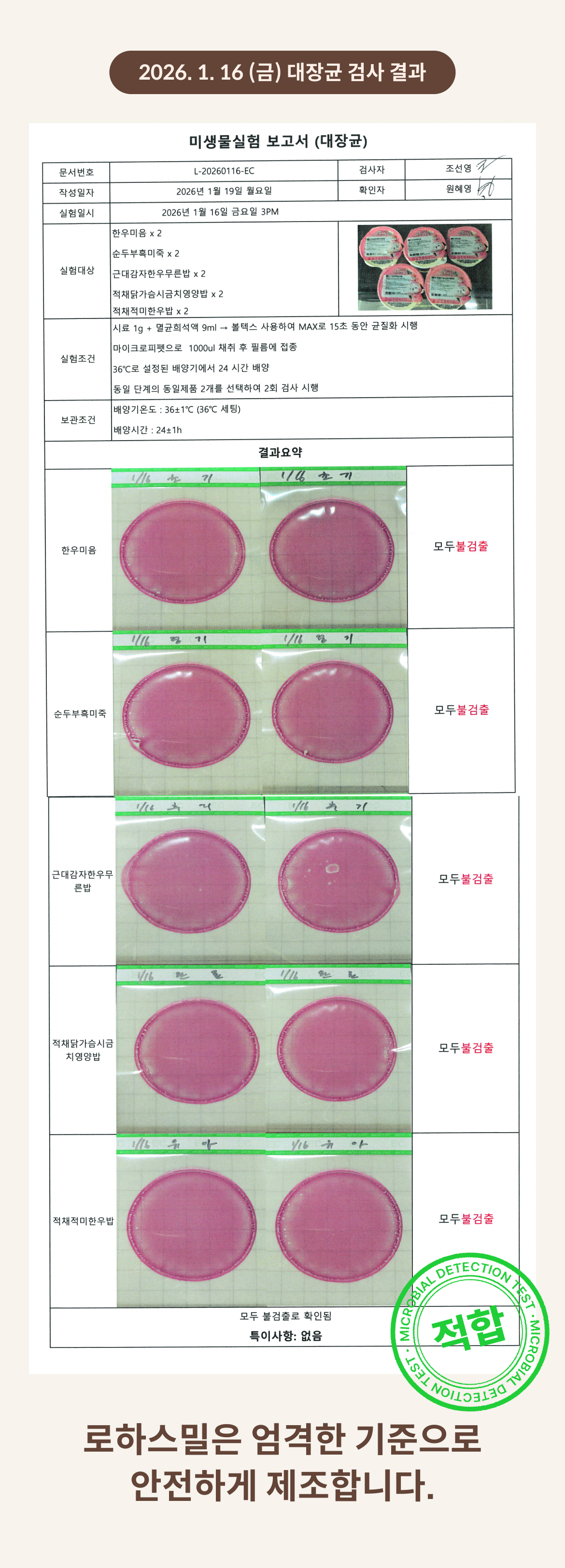 2026. 1. 16 (금) 대장균 검사 결과