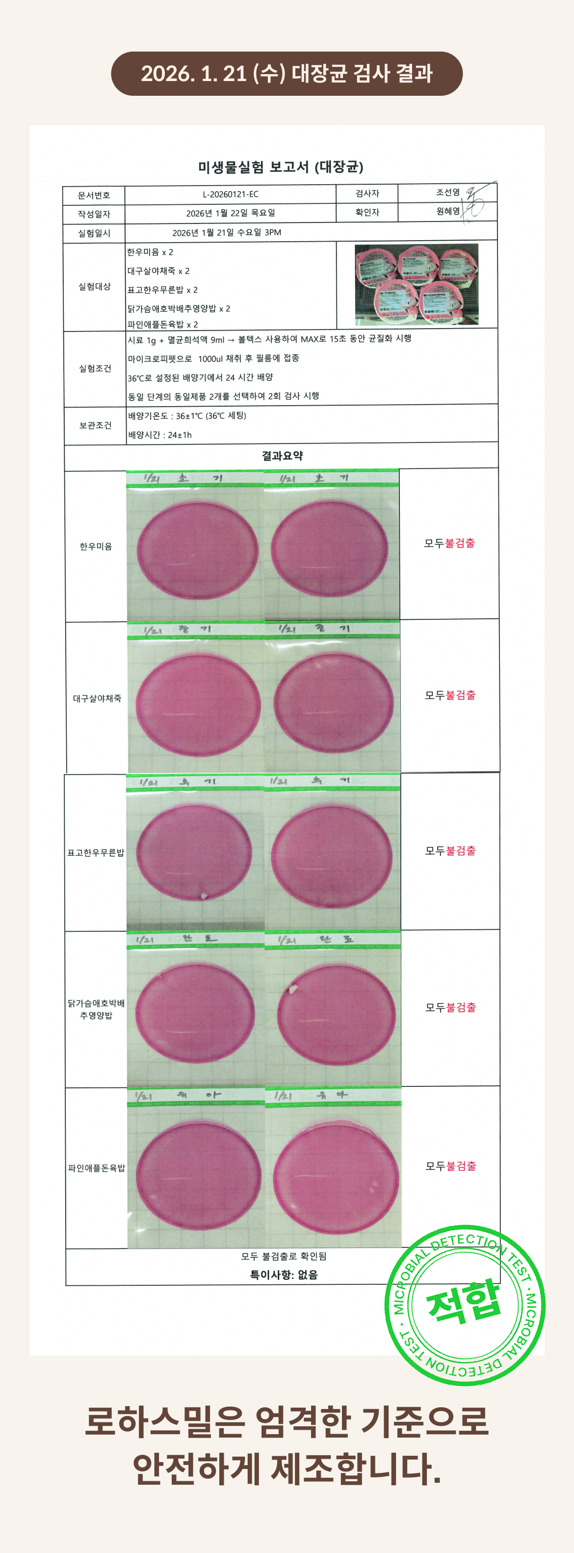 2026. 1. 21 (수) 대장균 검사 결과
