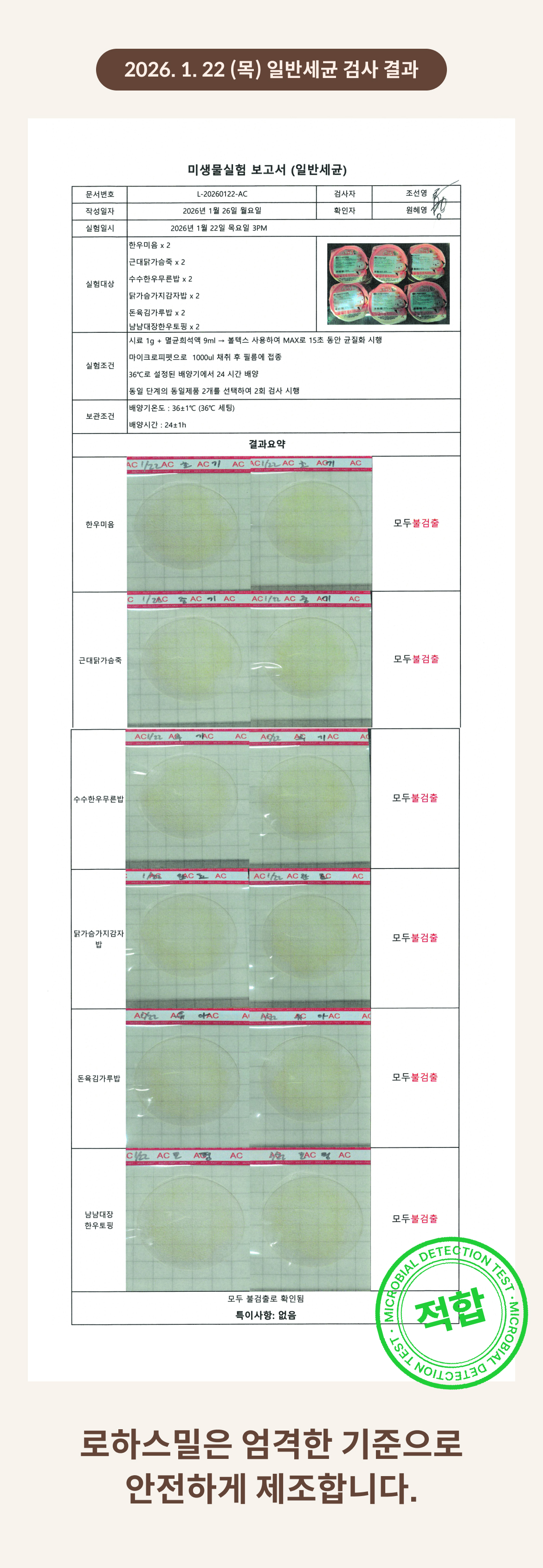 2026. 1. 22 (목) 일반세균 검사 결과