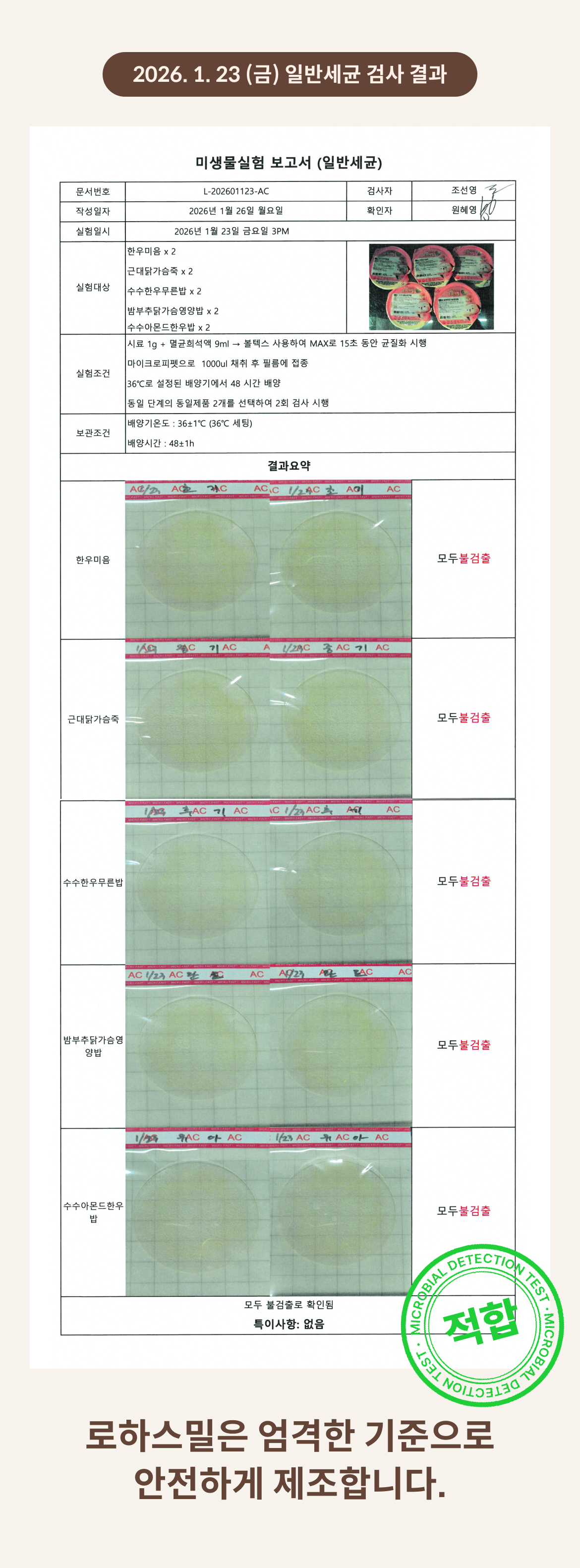 2026. 1. 23 (금) 일반세균 검사 결과