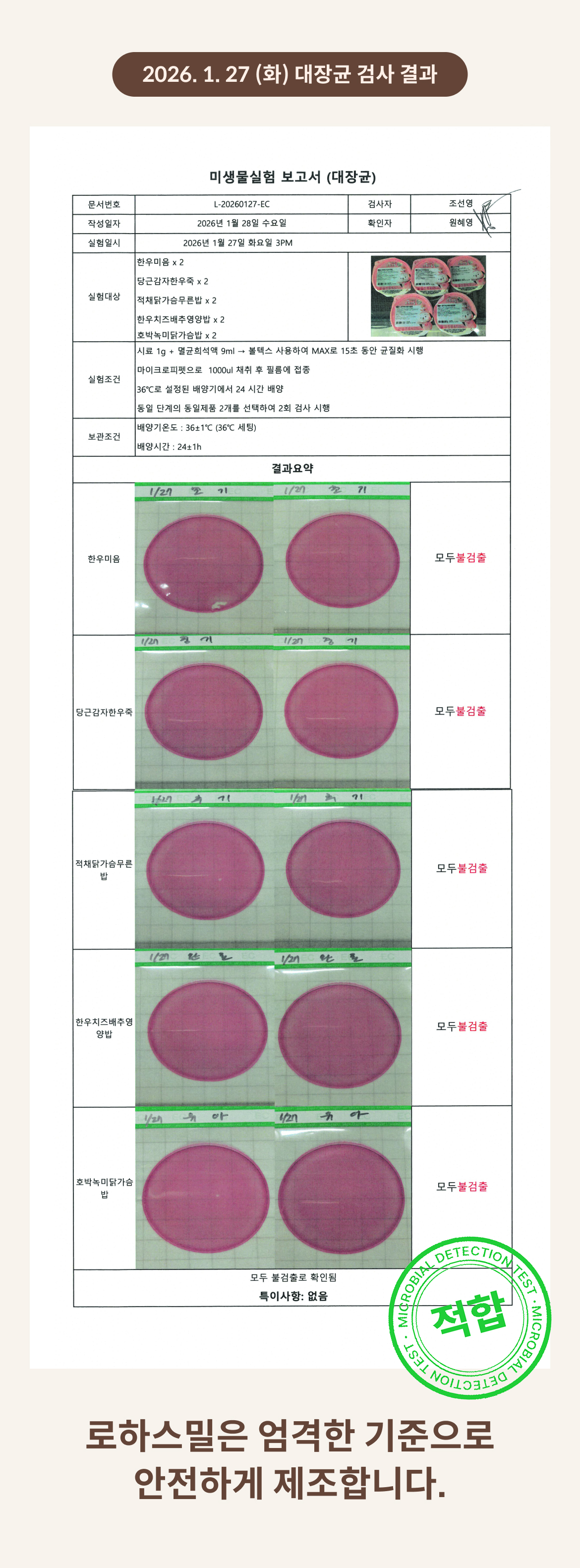 2026. 1. 27 (화) 대장균 검사 결과