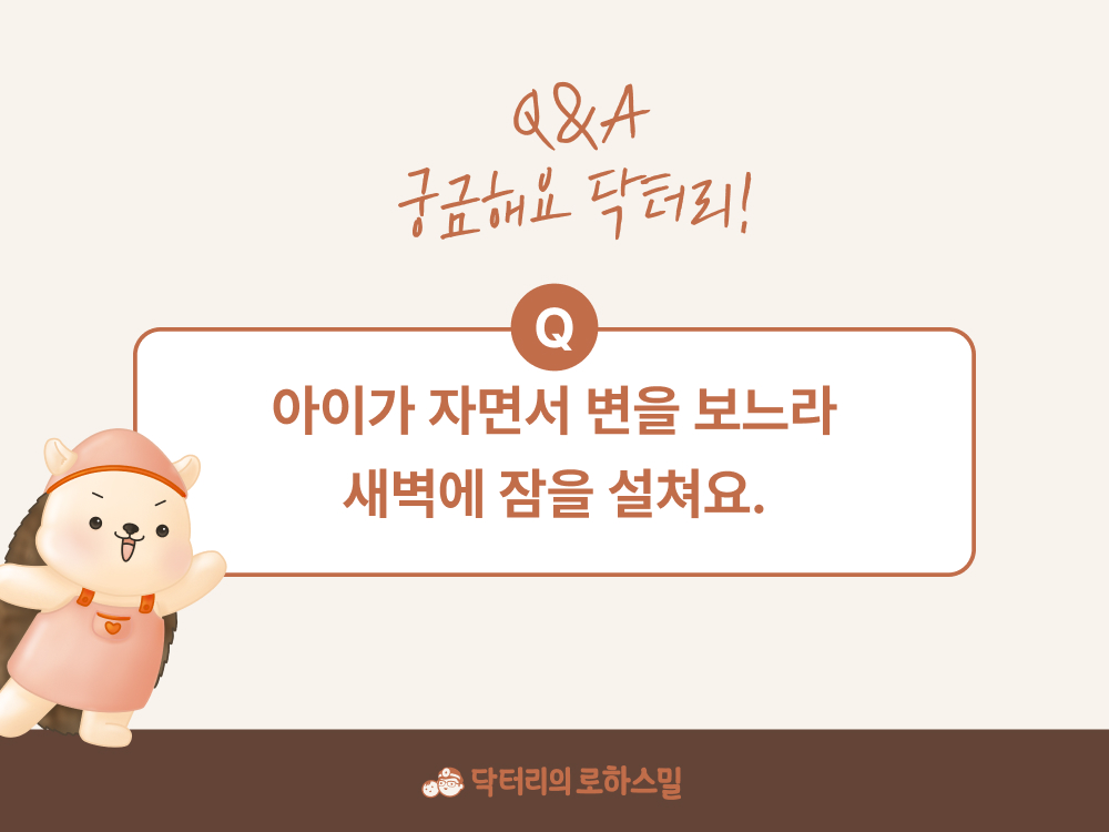 그래서 자꾸 밤에 잠을 설칩니다. 설사는 아니고 그냥 일반 변 모양이고 하루에 3~4번 응가를
