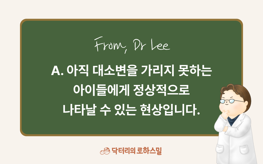 A. 아직 대소변을 가리지 못하는 아이들에게 정상적으로 나타날 수 있는 현상입니다.