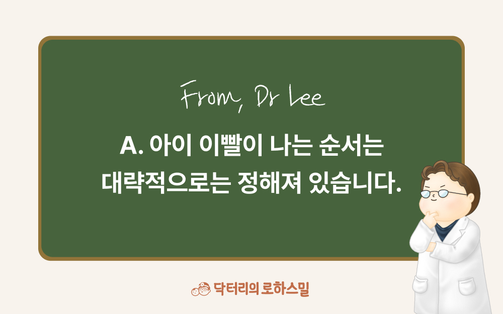 A. 아이 이빨이 나는 순서는 대략적으로는 정해져 있습니다.