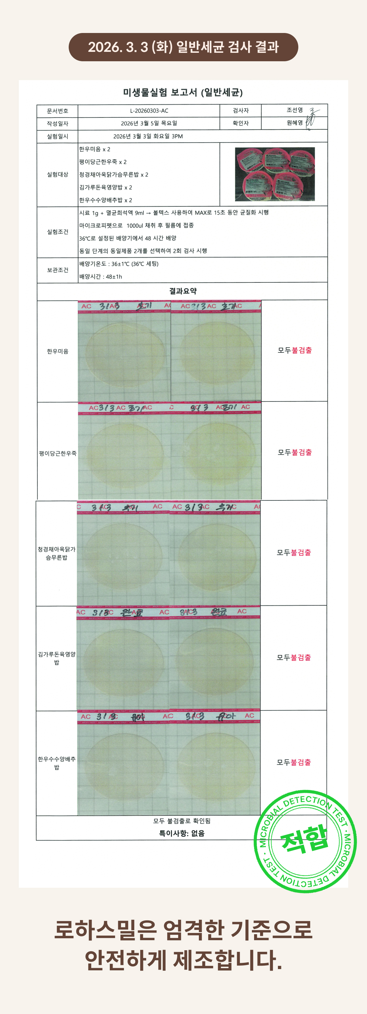 2026. 3. 3 (화) 일반세균 검사 결과