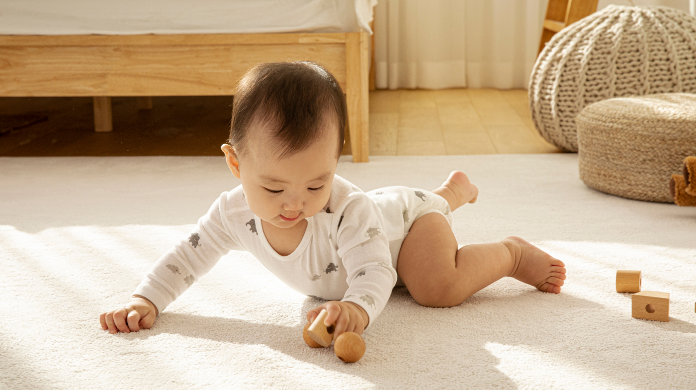 이 시기 아이는 몸통을 바닥에서 들어올리며 팔과 다리를 교대로 움직이는 법을 배웁니다. 기어가기는 단순한 이동이 아닙니다. 양쪽 뇌의 협응, 공간 지각력, 상체와 하체의 근력 발달이 동시에 이루어지는 중요한 과정입니다. 모든 아이가 같은 방식으로 기지는 않으며, 배밀이나 엉덩이로 끌기도 정상적인 이동 형태입니다. 기는 시기가 조금 늦더라도 크게 걱정하지 않으셔도 됩니다.