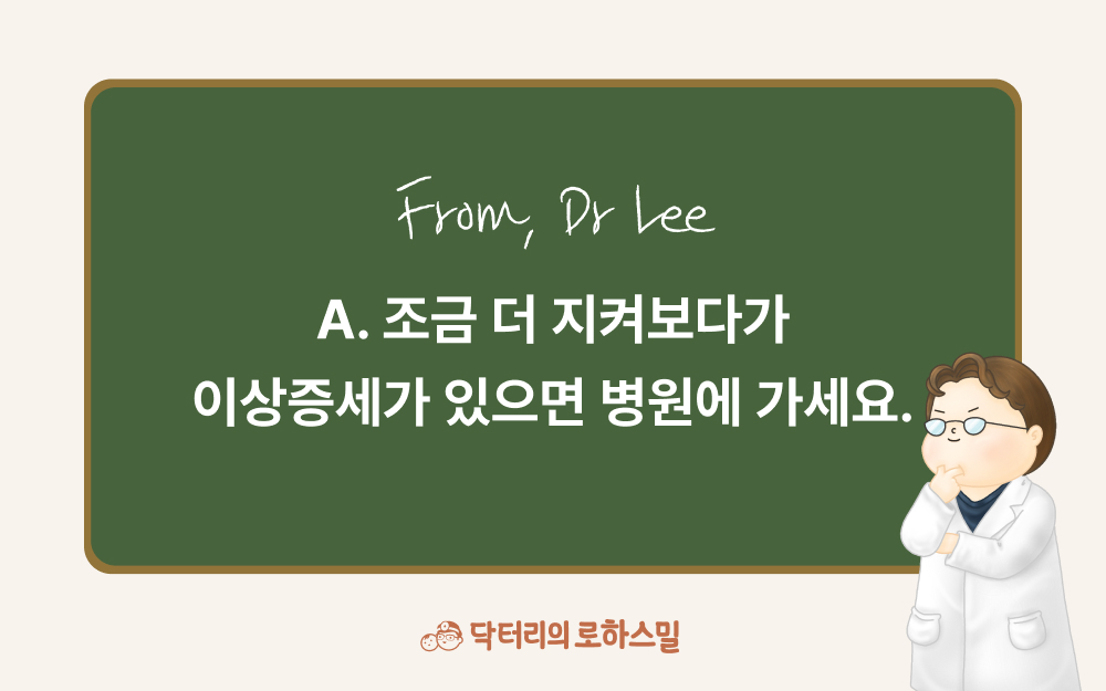 A. 조금 더 지켜보다가 이상증세가 있으면 병원에 가세요.