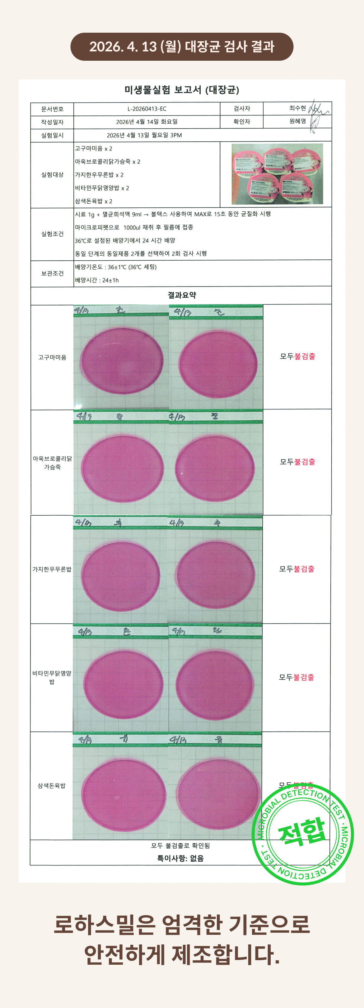 2026. 4. 13 (월) 대장균 검사 결과