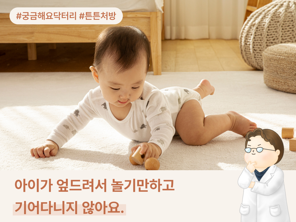 아이가 엎드려서 놀기만하고 기어다니지 않아요.
