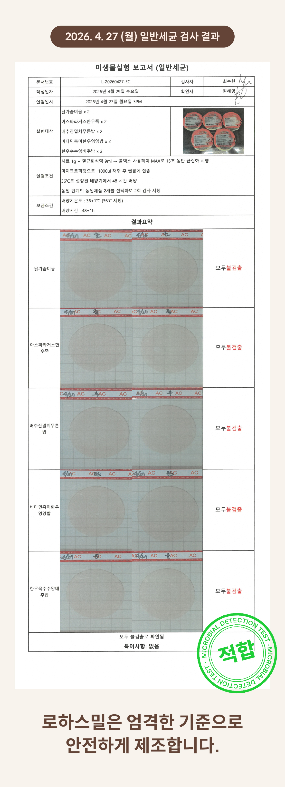 2026. 4. 27 (월) 일반세균 검사 결과