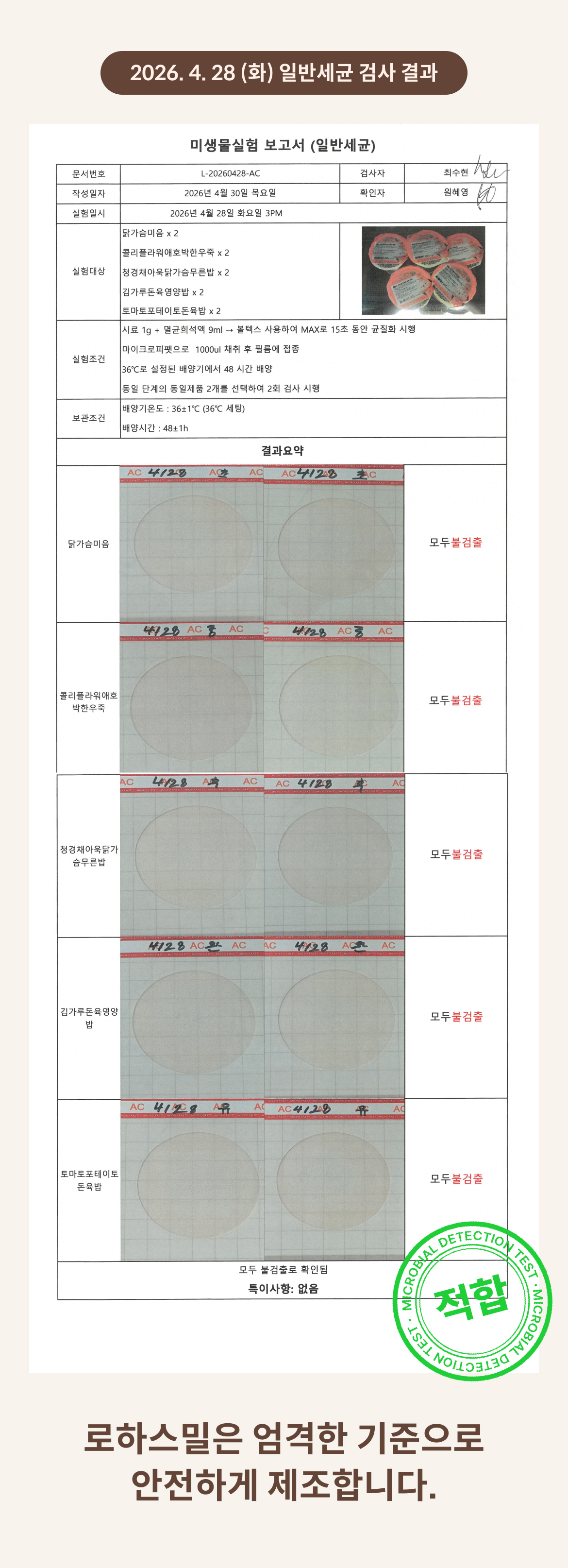 2026. 4. 28 (화) 일반세균 검사 결과