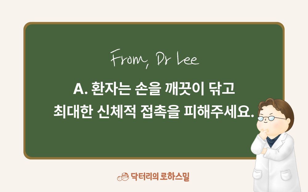그렇지만 대상포진이 전염성이 전혀 없는 것도 아니랍니다. 수두가 공기 중 전파되는 것에 비해 대상포진은 주로 접촉, 그중에서도 수포를 접촉함에 따라 발생합니다. 따라서 마스크 쓰고 피할 정도는 아니지만 대상포진 환자와의 신체적 접촉은 가능한 피하는 것이 좋습니다. 당연히 환자의 경우에는 손을 깨끗이 씻어야 전염을 피할 수 있습니다. 접촉 후 3~5일 이내에 예방접종을 하게 되면 발병을 막을 수 있다고는 하지만 돌 이후 아기에 해당하고 수두 접촉에 해당하지만 대상포진 접촉에는 해당되지는 않습니다. 면역주사도 있지만 이것도 면역저하 질환 환자나 임산부, 신생아에서 추천되는 항목이고요.