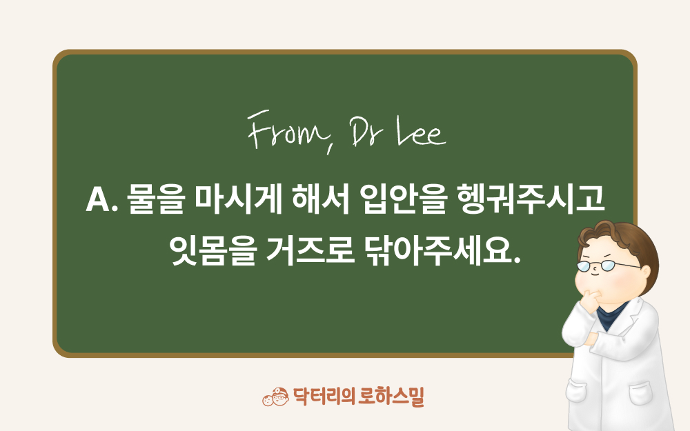 예전에는 이가 나기 전에는 특별히 치아 관리가 필요하지 않다고 여겨졌으나 최근에는 이가 나기 전부터 잇몸 관리해 주는 것이 좋다고 여겨지고 있습니다. 이는 이빨이 나기 전에 미리 양치하는 연습을 함으로써 치아가 나고 나서 갑자기 양치를 시작할 때 발생하는 거부감을 막기 위한 것인데요. 이유식을 하게 되면 입에 음식 찌꺼기가 남을 수밖에 없습니다. 일단 물을 조금 마시게 함으로써 입안을 헹궈주시고 잇몸을 거즈로 닦아주시는 방법을 쓰시면 됩니다. 모유나 분유 수유, 혹은 주스 등을 먹게 되었을 때는 건더기가 많지 않기 때문에 잇몸 닦아주기가 너무 번거로우시다면 헹궈준다는 느낌으로 물을 사용하시면 된답니다.